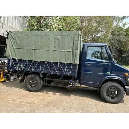 Fully stitched canvas canopy covers tailored with brass eyelets and robust ropes for easy handling and secure fitting on all army vehicle types.